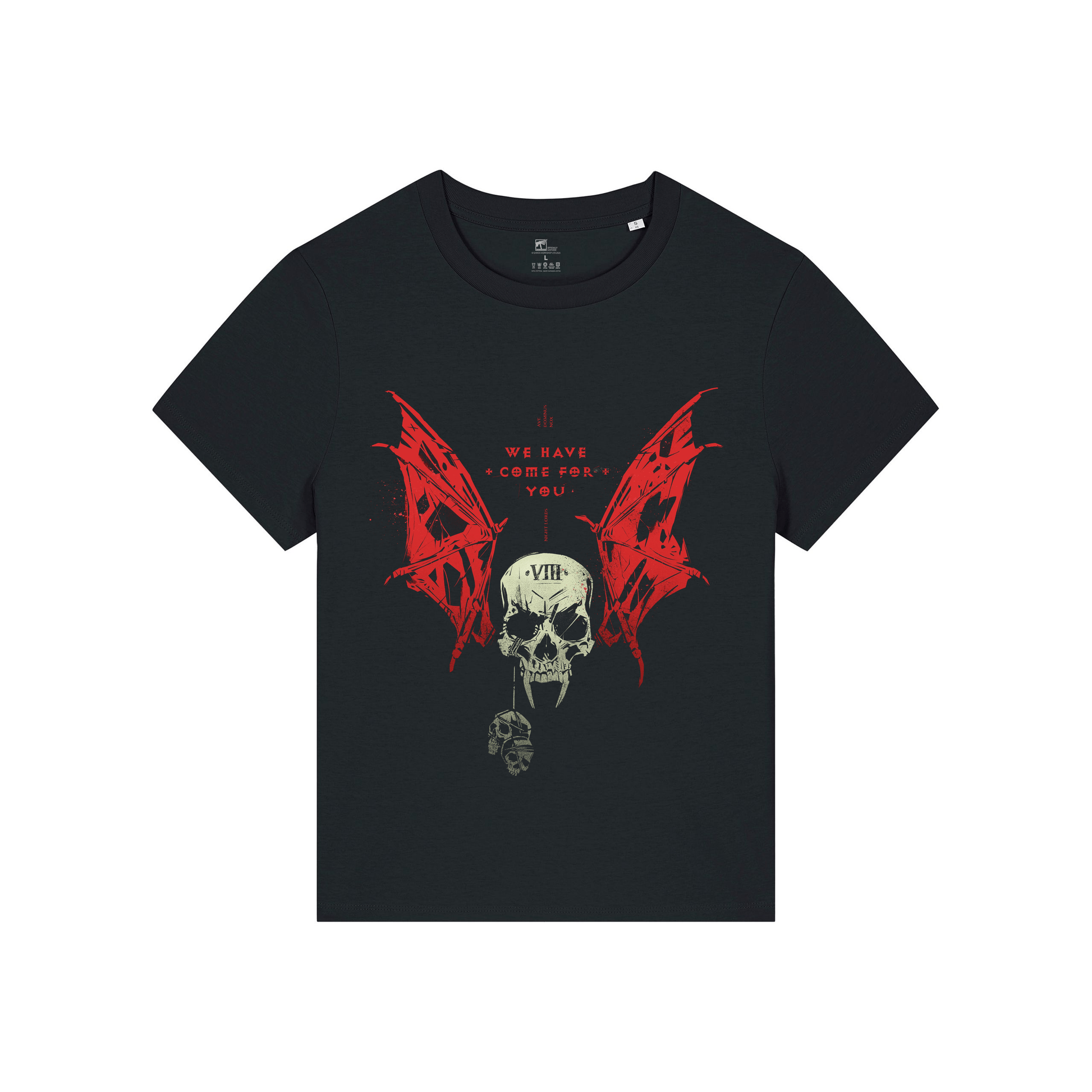 Official Warhammer 40,000 - Night Lords 'We Have Come For You' Fitted T Shirt, available in sizes small - 2XL.