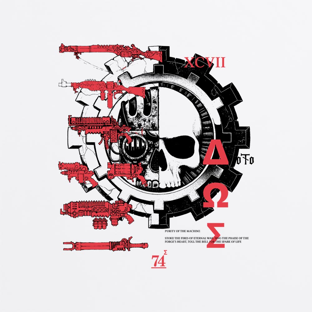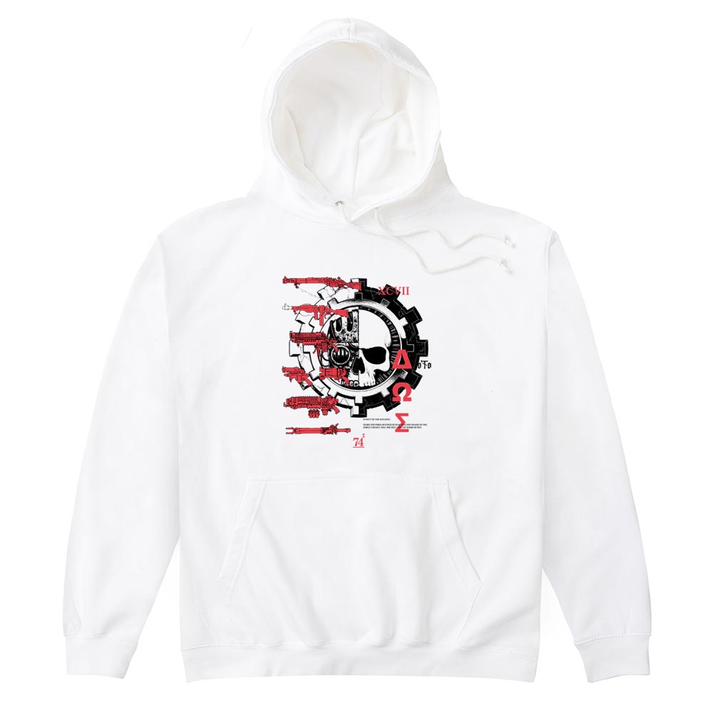 Official Adeptus Mechanicus Arsenal Hoodie available in sizes Small to 2XL on White.